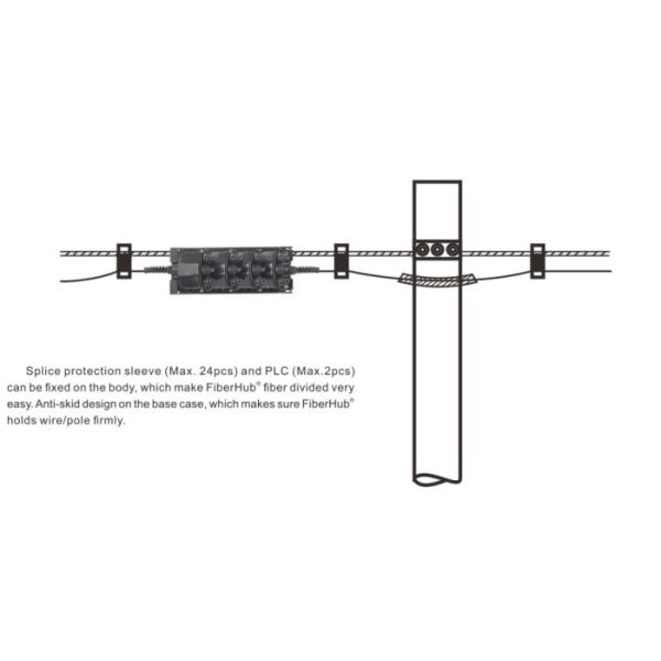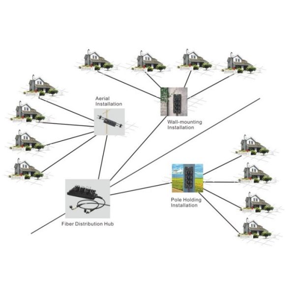 Traditional solution use ONU or FDH( optical network unit/fiber distribution Hub), when trunk opitcal cable arrives to outside of mansions and villas, Fiberhub can replace ONU or FDH becasue it has fiber distribution function. Inside, it can be fixed --4pcs 1*8 or 1*16 PLC, and can be put 24pcs fiber splice protection sleeves.